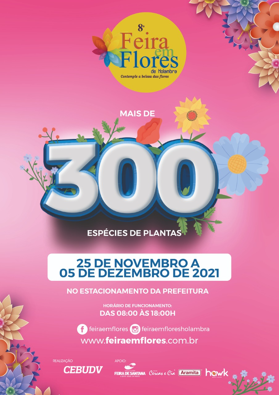 A 8ª edição da Feira em Flores acontecerá entre os dias 25 de novembro a 05 de dezembro de 2021, no estacionamento da Prefeitura de Feira de Santana.