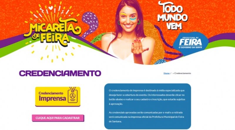 A Secretaria Municipal de Comunicação Social já iniciou o credenciamento dos profissionais e veículos de imprensa que desejam atuar oficialmente na cobertura jornalística e audiovisual da Micareta de Feira de Santana, que acontece entre os dias 20 e 23 de abril. O cadastramento é feito no hotsite www.micaretadefeira.com.br e segue até o dia 31 de março.