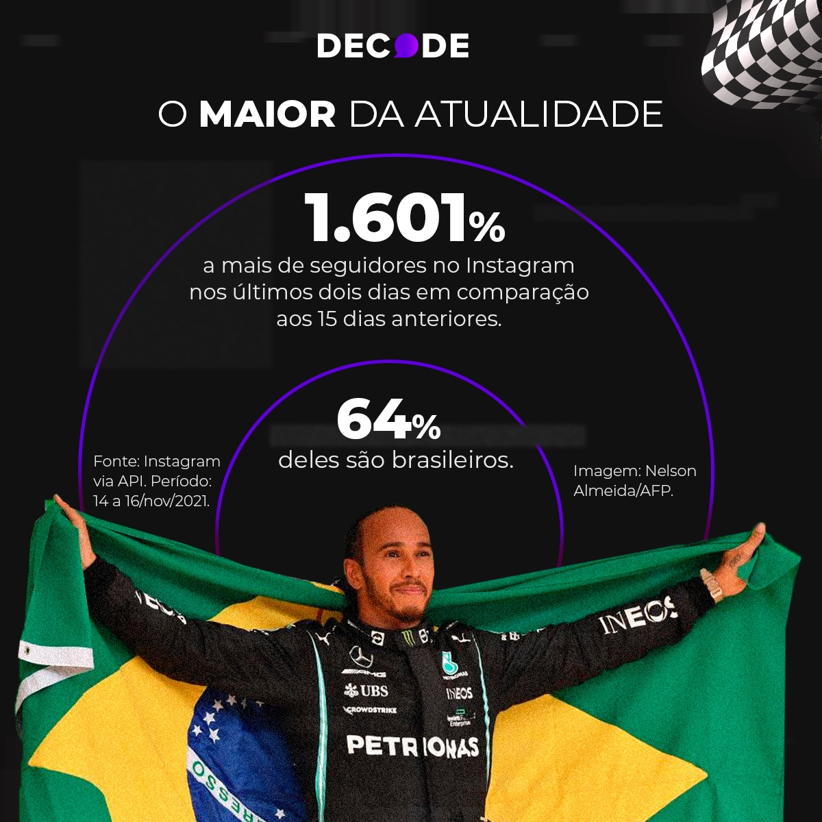 Hamilton também teve um crescimento significativo nas redes sociais após etapa brasileira da Fórmula 1.