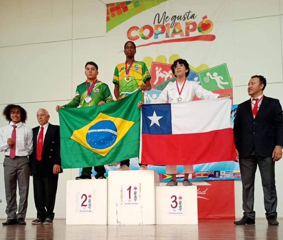 Pelo terceiro ano consecutivo, os karatecas da comunidade quilombola do Cangula, no município de Alagoinhas, fizeram bonito em uma competição internacional, representando a Bahia. O campeonato da vez ocorreu na província de Copiapó, na região de Atacama, no Chile, e foi realizado no sábado, 7, e no domingo, 8. Ao todo, os atletas apoiados pela Bracell conquistaram cinco medalhas, sendo uma de ouro e quatro de prata. A dourada foi obtida por Helder Pereira, na modalidade Kumite, que também levou a prata por equipe, na modalidade Kata, juntamente com Alisson Carulino.
