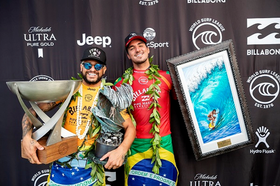 Depois do camisa 10 da seleção brasileira, Gabriel Medina, conquistar o primeiro título do Brasil em 2014, Adriano de Souza foi o campeão em 2015 e venceu a primeira final verde-amarela em Pipeline, com Medina. A primeira vitória do fenômeno no Pipe Masters veio em 2018, quando ganhou seu segundo título mundial. O de 2019 foi decidido em outra final brasileira nos tubos de Pipeline e Italo Ferreira se sagrou campeão, derrotando Medina na bateria que bateu todos os recordes de audiência na transmissão ao vivo.