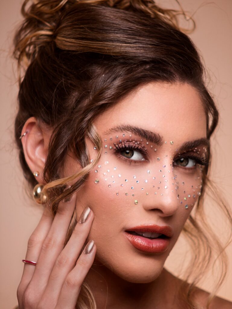 Na maquiagem, o brilho reina absoluto. Cores vibrantes, glitter metálico e aplicações de pedrarias prometem dominar a folia. “O Carnaval pede ousadia. É o momento perfeito para sair da rotina e experimentar uma make cheia de atitude. Tons vibrantes, delineados gráficos e aplicações de glitter para realçar a beleza vão ser os protagonistas desta edição”, completa Carmim.