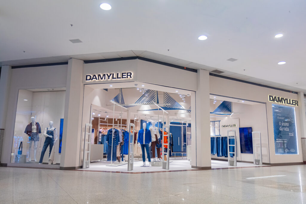 Localizada no térreo, a nova Damyller está comprometida com práticas de negócios sustentáveis e utiliza técnicas de produção que reduzem o impacto ambiental. Pelo espaço, há painéis estofados revestidos com o tecido White jeans, cordas de sisal reaproveitadas como detalhe de pesponto em painéis e tubos de papelão reutilizados. Os provadores contam com botões para acionar o atendimento dos vendedores e a loja ainda apresenta o Guia Jeans, que facilita a escolha do produto e dá mais informações das peças. Tudo pensado para um público de comportamento jovem e inovador, que gosta da moda fácil do jeans para a vida real.