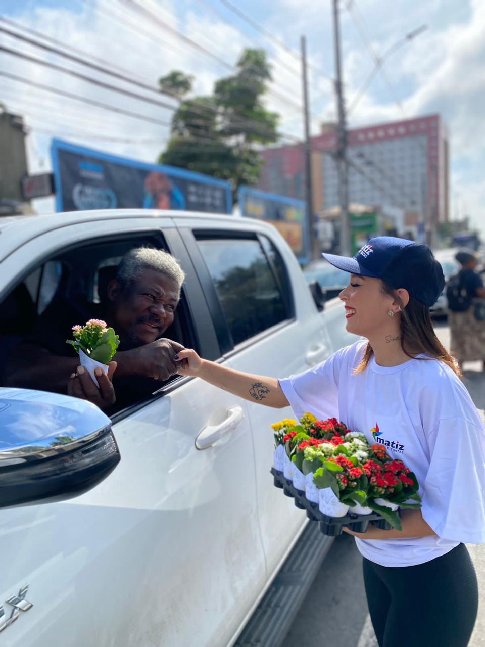A frase e flores entregues a quem passou pela Avenida Getúlio Vargas na manhã desta quinta-feira (22) fizeram desabrochar os sorrisos mais bonitos. E era esse o propósito da Matiz Cores e Tintas ao realizar a ação, para celebrar a chegada da primavera.