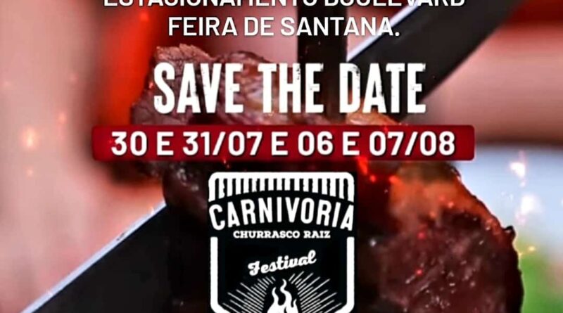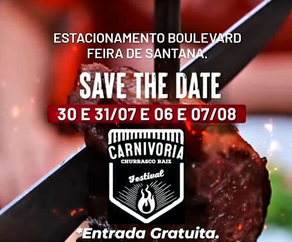 Os amantes do bom assado poderão contar coma presença do DOM da Brasa nos dias 30, 31/07 e 06 e 07/08 no Festival de Churrasco Carnivoria que acontecerá pela primeira vez no Boulevard Feira de Santana no estacionamento E1 do Shopping, das 12h às 22h no sábado e das 12h às 21h no domingo. O evento tem entrada gratuita, o cliente paga somente o consumo.