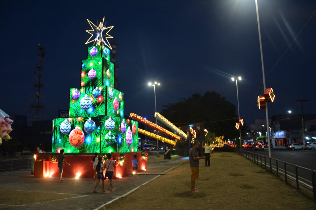 “A peça decorativa é composta por quase 100 metros de painel de Led outdoor e tem estrutura de 230 metros Q30 (são estruturas de alumínio). Tudo isso tem atraído às pessoas de diferentes idades a prestigiarem a decoração da nossa cidade”, destaca o proprietário da empresa B Leal Produções, Bruno Leal.