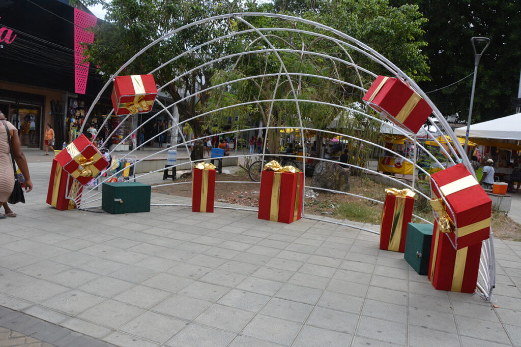 Cenários iluminados e peças decorativas com a temática do Natal, em alguns pontos do centro de Feira de Santana e na avenida Getúlio Vargas, atraem os olhares e são um convite para registros fotográficos e filmagens, além da aquela selfie para compartilhar nas redes sociais.