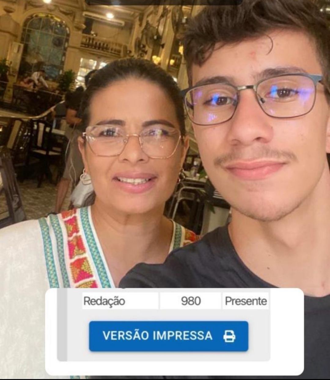 Com apenas 17 anos de idade, o jovem estudante, Arthur Oliveira Carneiro, filho de Gilberto Carneiro e da chefe de Gabinete da Fundação Municipal Egberto Tavares Costa – FUNTITEC, Cleane Oliveira, conseguiu obter 980 pontos na prova de Redação do Enem em Feira de Santana.