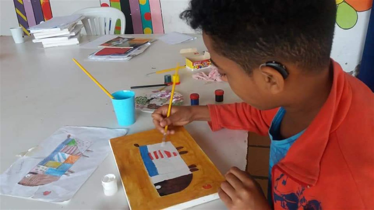 Os alunos são acompanhados pela artista plástica Veroka, no contraturno das atividades escolares. As obras apresentadas fazem uma releitura do artista plástico Gustavo Rosa. Nos quadros elementos como ludicidade, humor, diferentes cores, vivacidade, traçado e características infantis bem peculiares ao modo de produção de Rosa.