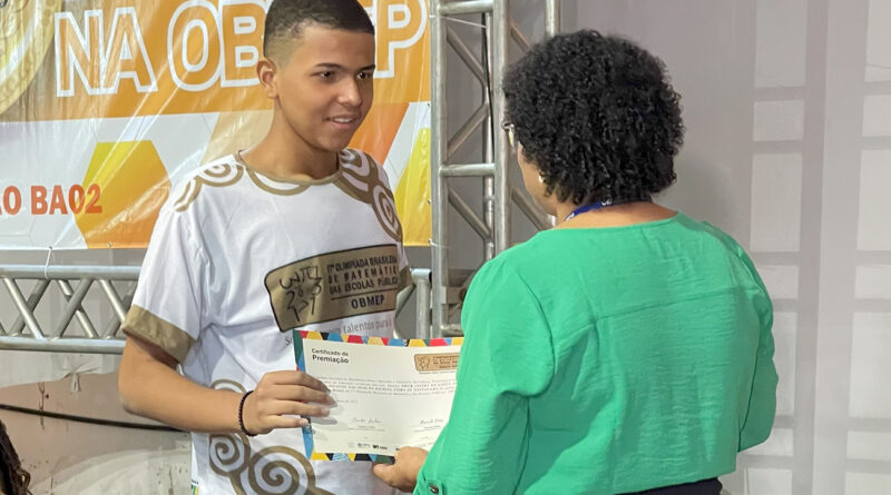 Estudantes da educação municipal foram premiados na última segunda-feira (17) pelo desempenho na Olimpíada Brasileira de Matemática das Escolas Públicas (OBMEP), de 2022. A cerimônia aconteceu no auditório central da Universidade Estadual de Feira de Santana (UEFS). Ao todo foram entregues 16 medalhas para alunos de escolas públicas. Feira de Santana ficou com 11, dessas, duas foram para alunos de escolas municipais da cidade.