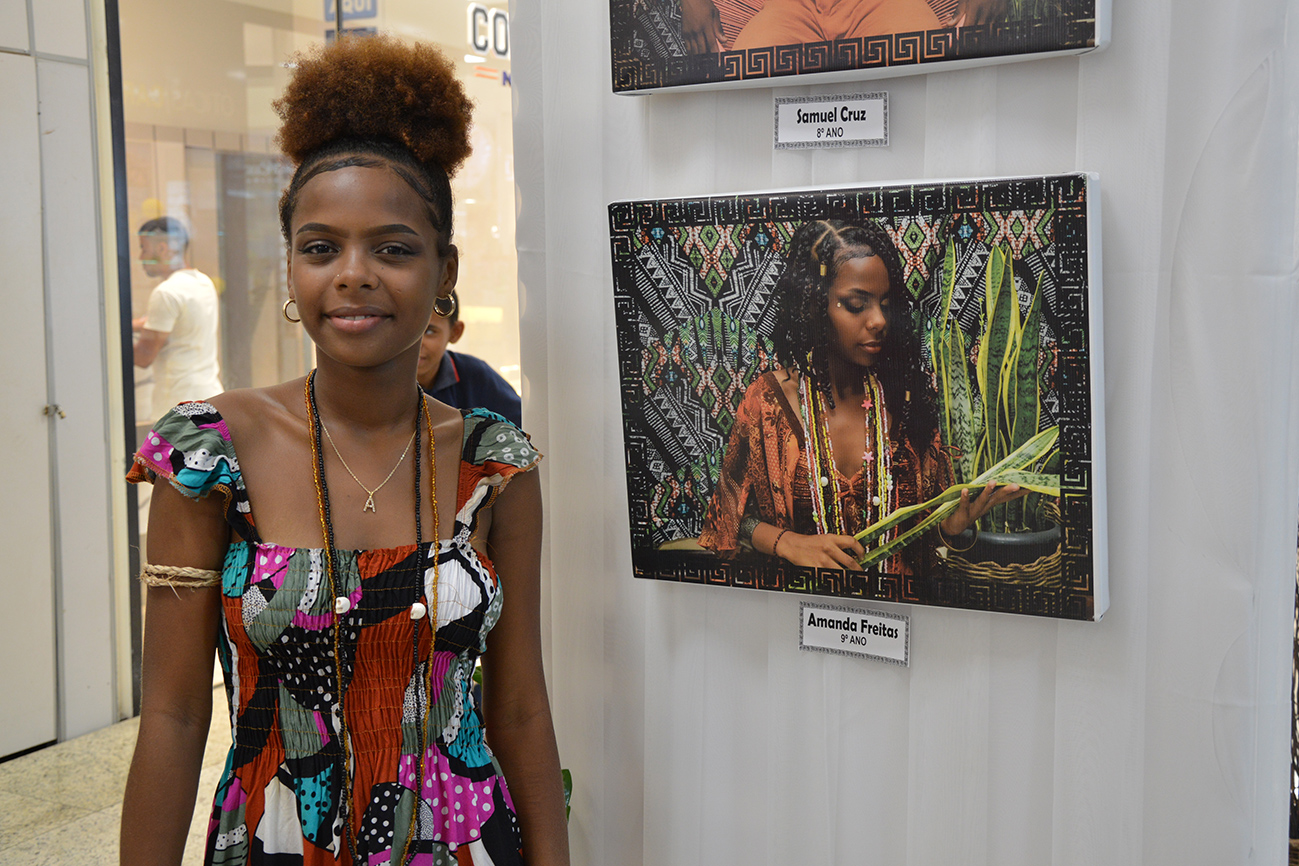 Para a estudante Ana Rita dos Santos, do 7º ano, a sensação de ter uma foto sua exposta em um shopping contribui para a construção de identidade, além de exaltar a beleza negra.