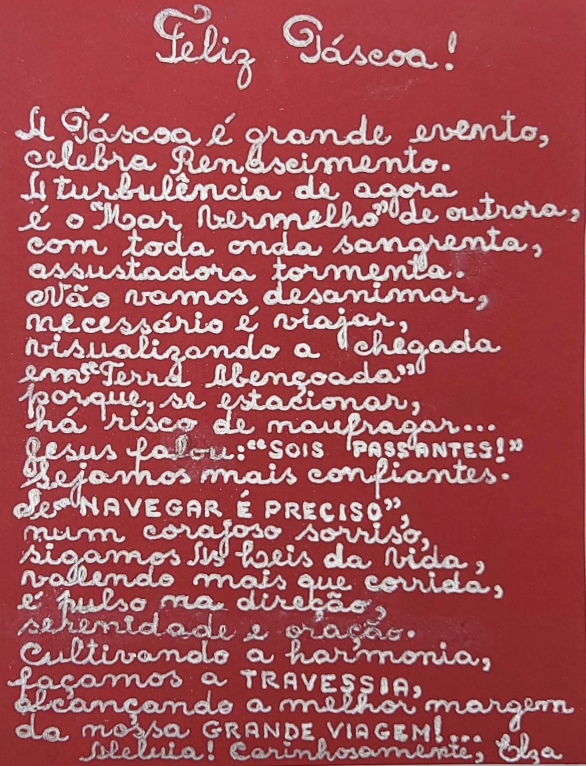 Destaque Geral FELIZ PÁSCOA 8 de abril de 20238 de abril de 2023 Redação 0 Comentário Com essa linda mensagem da grande mestra Elza Santos Silva, desejamos a todos uma Páscoa abençoada e muito feliz! Paz e Bem! Comentários