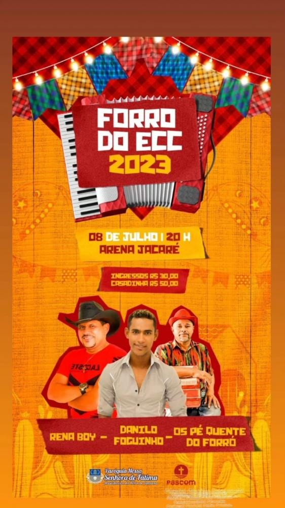 Nesta edição do Forró do ECC a animação fica por conta de Os Pé Quente do Forró, Danilo Foguinho e Rena Boy. Os ingressos podem ser adquiridos na Secretaria da Paróquia Nossa Senhora de Fátima ou através do WhatsApp (75) 981322711. Você é nosso(a) convidado(a).