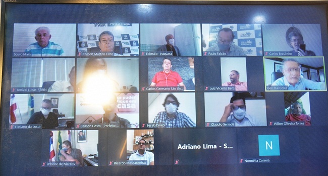 A adoção do Toque de Recolher em localidades que registram maiores índices de contaminação do novo coronavírus em Feira de Santana foi proposta pelo Governador Rui Costa em reunião por video-conferência com o prefeito Colbert Martins Filho na manhã desta quinta-feira, 09. A reunião online contou com a participação de vários outros gestores do estado da Bahia.