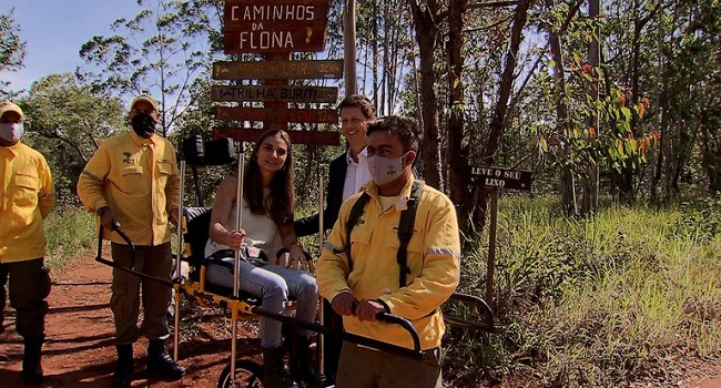 Oministro do Meio Ambiente, Ricardo Salles, entregou, nesta terça-feira (2), na Floresta Nacional de Brasília (DF), o primeiro lote de cadeiras de rodas adaptadas para o transporte em trilhas de ecoturismo. A ação faz parte do programa Parque+, criado pelo Ministério do Meio Ambiente para promover o ecoturismo em parques nacionais.