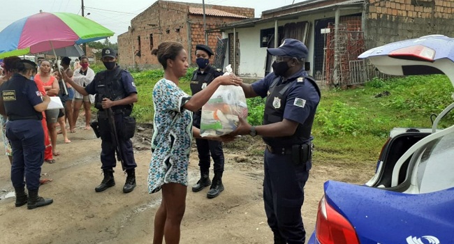 Guarda Municipal doa cestas básicas às famílias no Campo do Gado Novo