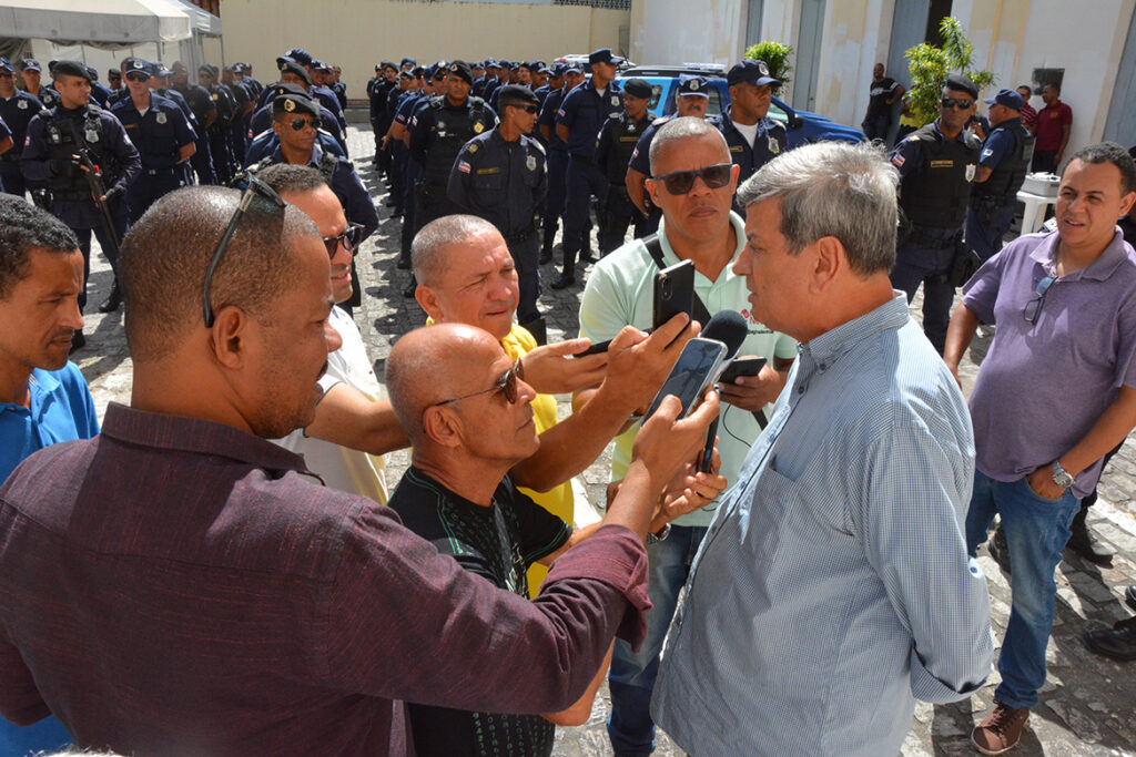 A Prefeitura de Feira de Santana realizou, na manhã desta sexta-feira (15), uma cerimônia de entrega de novos equipamentos para a Guarda Municipal. O evento foi conduzido pelo prefeito Colbert Martins Filho e contou com a presença do secretário de Prevenção à Violência, Moacir Lima, e outros secretários municipais.