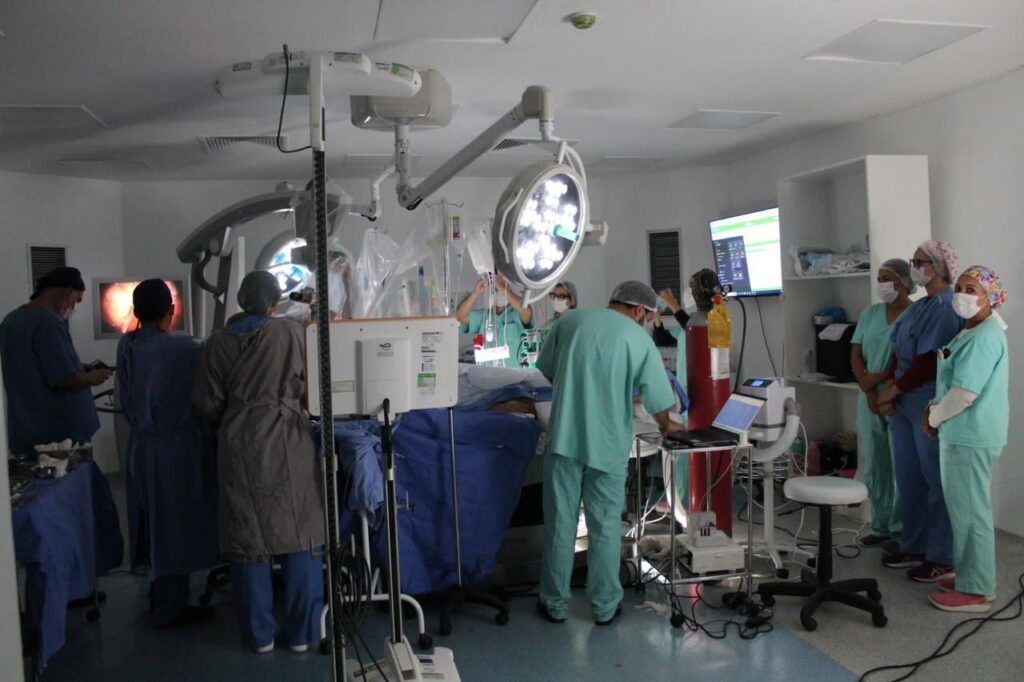 Trata-se de uma cirurgia que envolve um grande número de profissionais. No total, cerca de 12 pessoas, incluindo médicos, enfermeiros e neurofisiologistas, trabalharam em conjunto. “O sucesso da cirurgia também dependeu do apoio da administração do hospital e da colaboração de toda a equipe multiprofissional do centro cirúrgico. O procedimento, que começou às seis e meia da manhã e terminou às 17h, foi uma demonstração impressionante de trabalho em equipe e tecnologia médica avançada. Foram utilizados equipamentos específicos para esse tipo de cirurgia, como aspirador ultrassônico e neuronavegador, que auxiliaram na extração do tumor. Graças ao comprometimento de todos os envolvidos, a paciente saiu da cirurgia sem sequelas e já teve alta para casa”. disse Dr. Márcio.