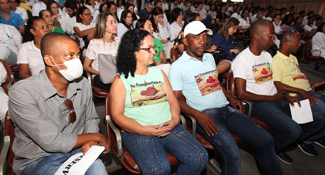 Pacientes transplantados, como a professora Renildes Abreu (coração), estiveram na cerimõnia.