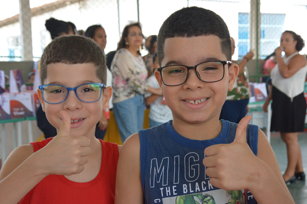 “Esse óculos vai ajudar o meu filho a enxergar melhor no dia a dia”. Vitória Michele, que teve dois filhos contemplados, agradeceu: “Essa ação ajudou muitas crianças, além das minhas. Gratidão à empresa”