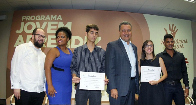Depois de passarem por dois anos de experiências com o mercado de trabalho, mais de 60 jovens baianos receberam a certificação do Programa Jovem Aprendiz, nesta quarta-feira (19). Iniciativa das Voluntárias Sociais da Bahia (VSBA), presidida pela primeira-dama Aline Peixoto, o projeto promove capacitação profissional na prática e conhecimentos teóricos sobre o mercado de trabalho. Na cerimônia de entregas dos certificados, realizada no auditório da Secretaria de Infraestrutura da Bahia (Seinfra), em Salvador, o governador Rui Costa parabenizou os jovens, que foram ao evento acompanhados de suas famílias.