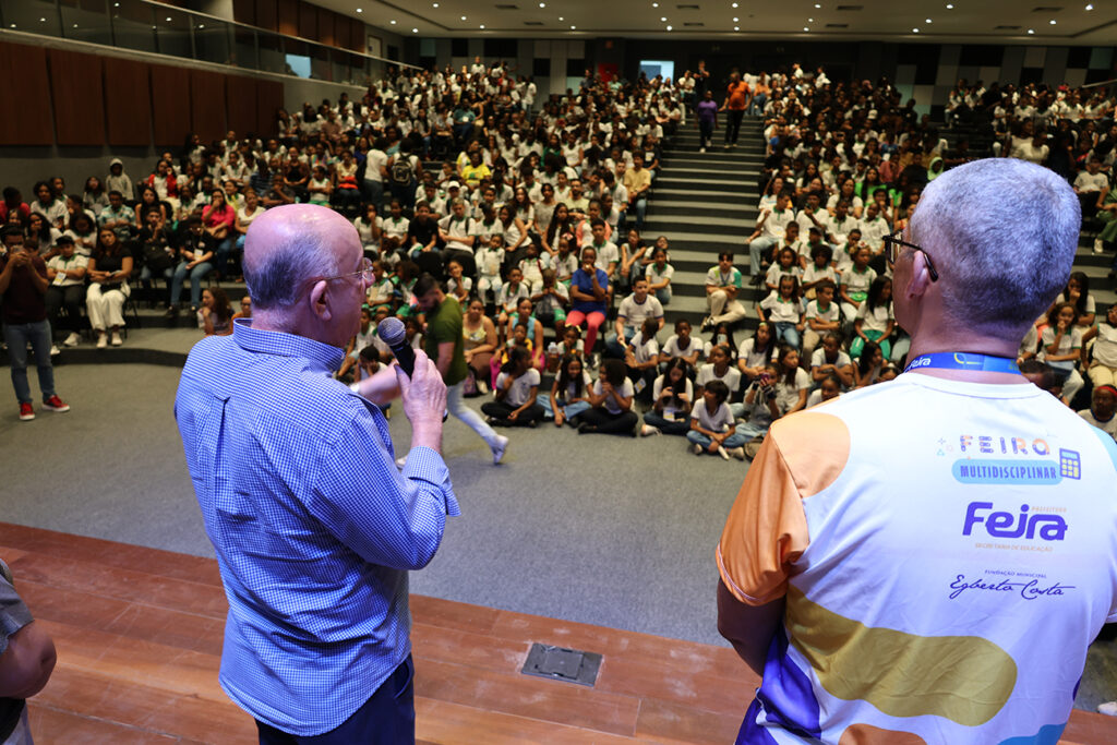 “É lindo ver esse auditório cheio de gente bonita. A educação de Feira de Santana só melhora com a participação de todos, professores, alunos, pais e gestores. Quando várias mãos se unem, é possível transformar a realidade”, afirmou.