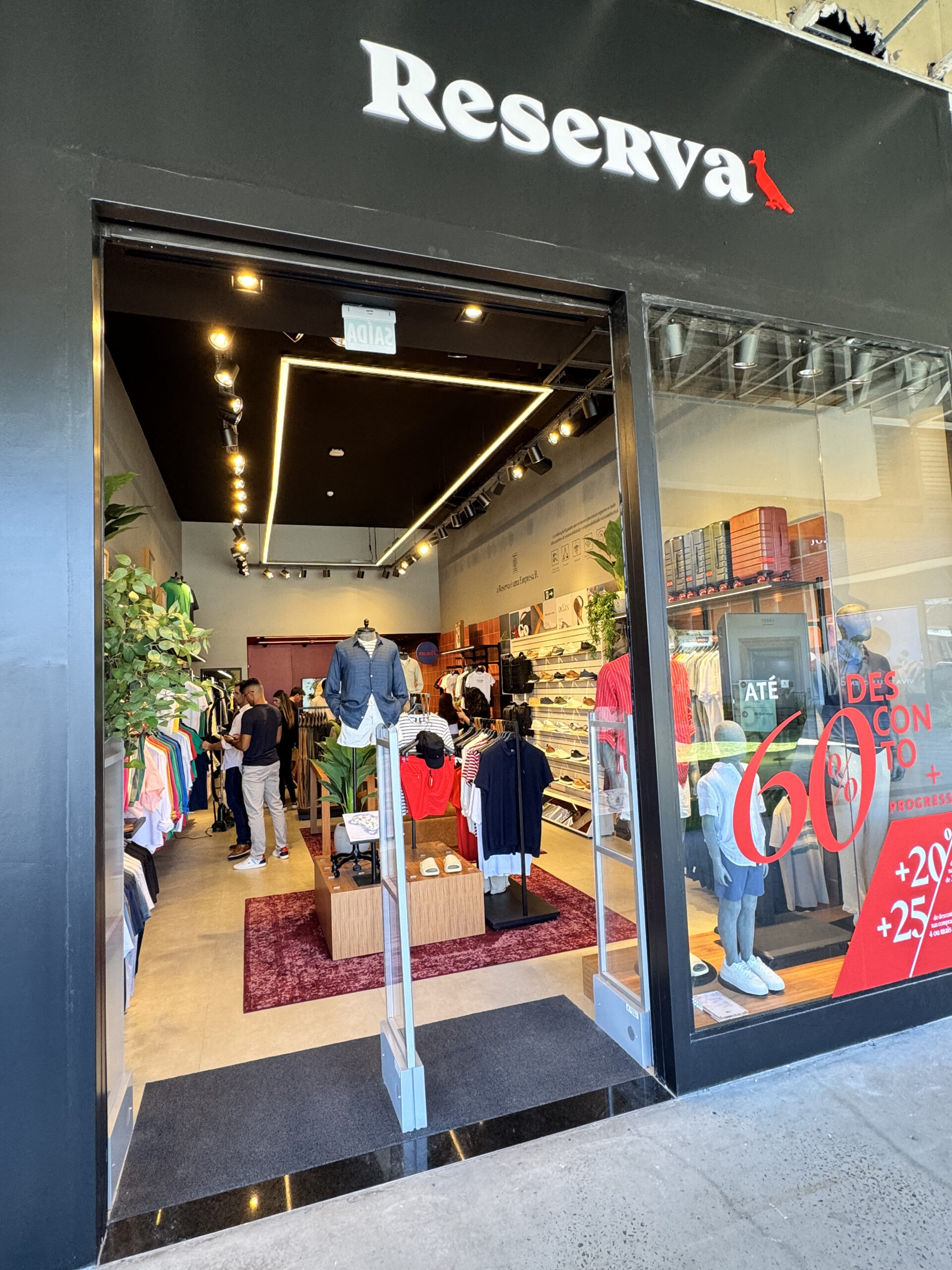 No segmento de moda masculina, a Reserva reforça o mix com peças que unem estilo, conforto e autenticidade. Fundada em 2004 no Rio de Janeiro, a marca se consolidou como referência nacional ao apostar em básicos e produtos contínuos. No novo espaço, o público poderá ter acesso a preços mais acessíveis, com opções atemporais e peças de coleções passadas.