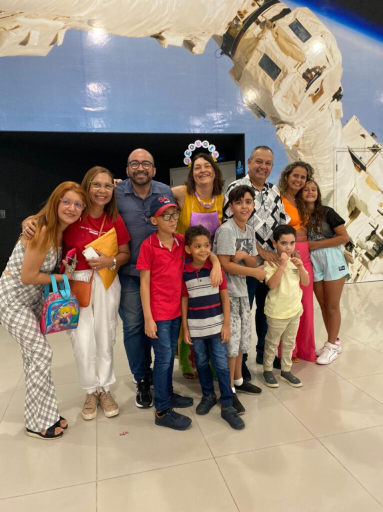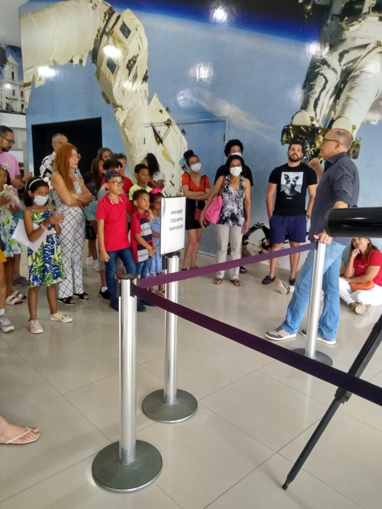 A cantora e radialista, Márcia Porto, participou do evento, acompanhada  de sobrinhos,  filhos de amigos  e demais familiares, que se encantaram com  as apresentações de filmes sobre o sistema Planetário, visualizações de telescópios, entre outros equipamentos da Fundação Municipal Egberto Tavares Costa  (Funtitec).