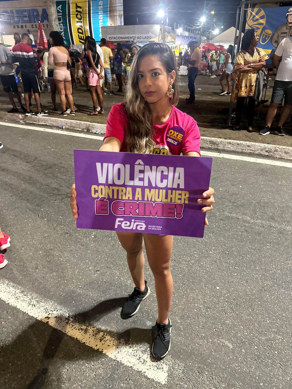 A advogada ressalta ainda que, dentro da Micareta, “houve o desfile, pela primeira vez em Feira de Santana, do bloco “Delas”, de iniciativa da Prefeitura Municipal, através da Secretaria Municipal de Políticas para Mulheres, que estreou no sábado (3), ao som da Banda “A Mulherada”, e, durante o percurso, reforçamos, junto com a rede de apoio, as mensagens de que importunação sexual é crime, que a violência contra a mulher é crime e que é possível denunciar”.