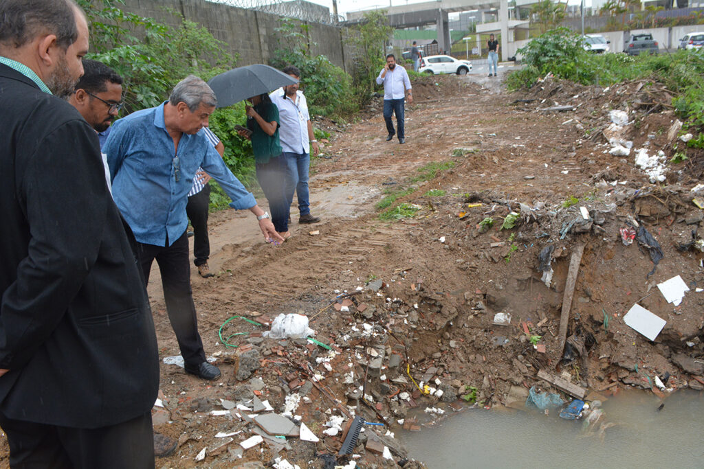 O prefeito Colbert Filho, o superintendente de Operações e Manutenção (SOMA), João Vianey, além do procurador Augusto Graça Leal e técnicos do Governo Municipal, estiveram no local para discutir outras alternativas que podem evitar novos problemas relacionados à drenagem. A visita foi acompanhada também por representantes de construtoras e alguns moradores.