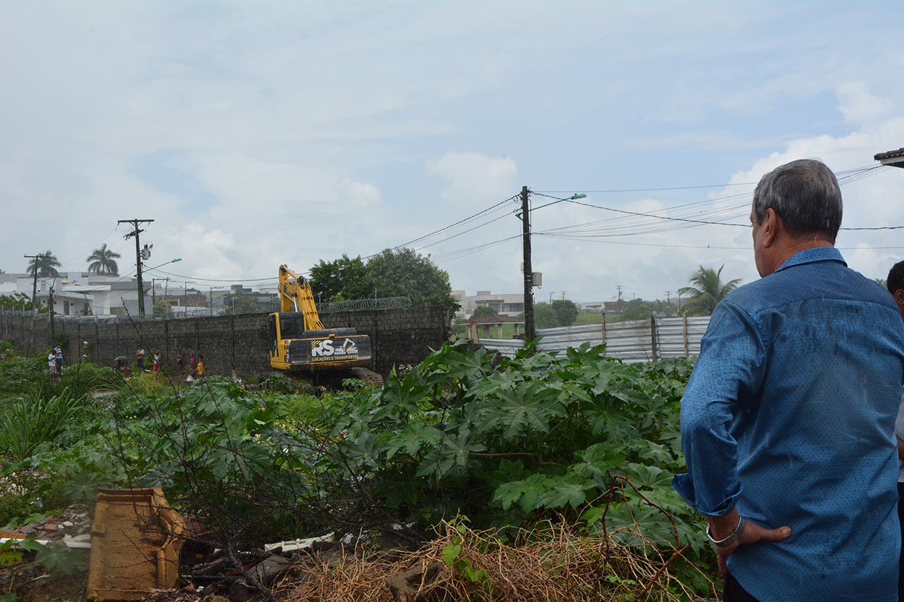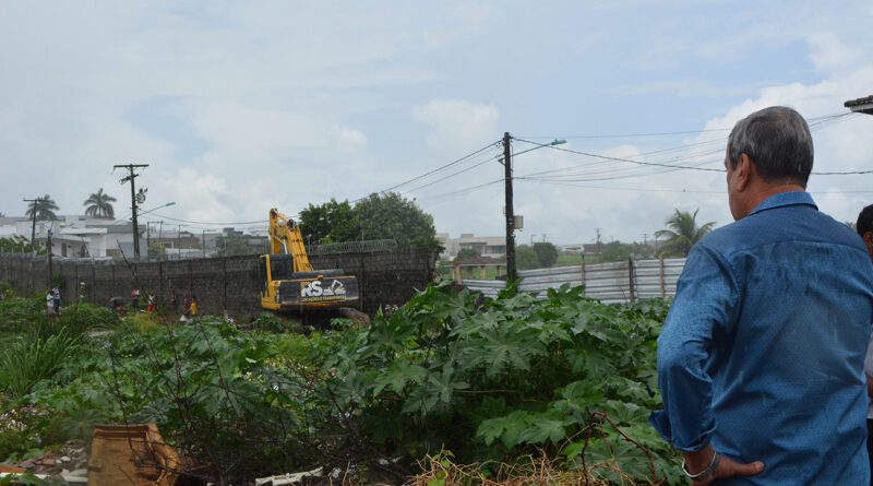 Prefeito Colbert Filho acompanha limpeza de canal no bairro Papagaio.