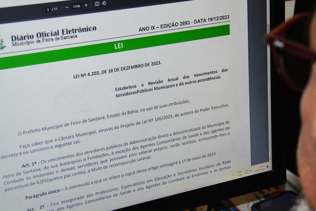 A Lei, identificada como Nº 4.203, de 18 de dezembro de 2023, determina um reajuste salarial de 4% para os servidores da administração direta e descentralizada.