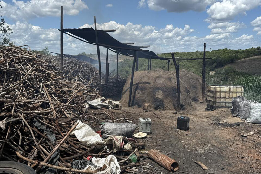 Durante a fiscalização, foi constatado que três fornos estavam em funcionamento, produzindo carvão de forma irregular. Além disso, a equipe encontrou aproximadamente 50 metros cúbicos de lenha nativa, que, segundo apuração, provinha de desmatamento ilegal. O proprietário da carvoaria não possuía o Documento de Origem Florestal (DOF), necessário para o manejo de madeira, nem a autorização dos órgãos competentes para executar a atividade.