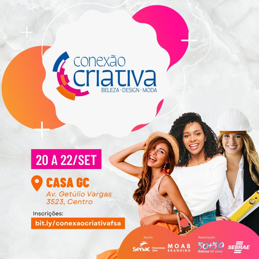 A criatividade nada mais é do que a capacidade de imaginar, conceber ideias, de inovar. E é assim que se fomentam os negócios criativos. Com o objetivo de promover novos olhares e possibilidades, o Sebrae em Feira de Santana realiza, nos dias 20, 21 e 22 de setembro, a primeira edição do Conexões Criativas: Moda, Beleza e Design.