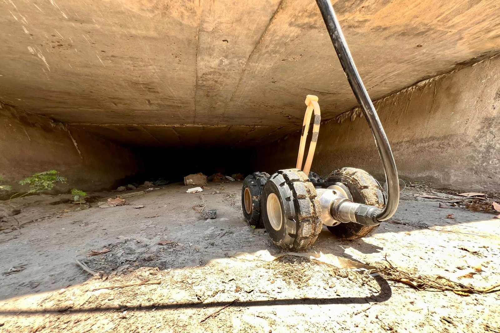 Robô de videoinspeção flagra rede de esgoto da Embasa em canais de drenagem pluvial.