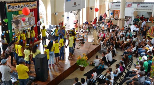 A roda esteve no epicentro das manifestações culturais na manhã desta quarta-feira, 24, na Semana do Folclore do Mercado de Arte Popular. Primeiro com cantigas e, depois, com samba. Dezenas de crianças viveram uma atividade pouco comum aos seus cotidianos: primeiro cantiga de roda. O espetáculo foi apresentado por alunos da Escola Maria Rita Alves de Souza, do povoado de Areias, em Anguera.