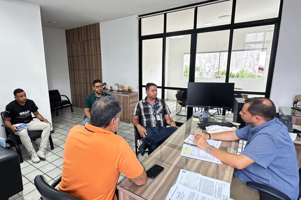 A reunião, que teve como foco a organização da Expofeira 2025, contou com a presença do inspetor-chefe do CREA-BA e engenheiro civil, Matheus Mônaco, do engenheiro agrônomo Joedilson Machado, do engenheiro de alimentos Jorge Rodrigo Assis, e dos representantes do CREAJR Núcleo em Feira de Santana, Lívia Porto e Luiz Fernando, graduandos em Engenharia de Alimentos pela Universidade Estadual de Feira de Santana (UEFS).