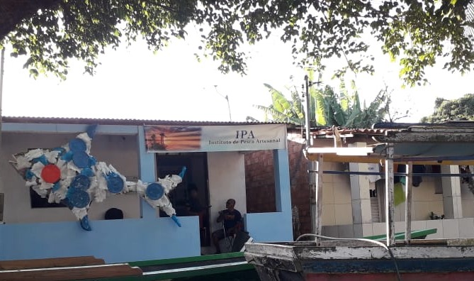 Escultura gigante de peixe produzida com resíduos chama atenção para o descarte correto na Ilha de Maré.