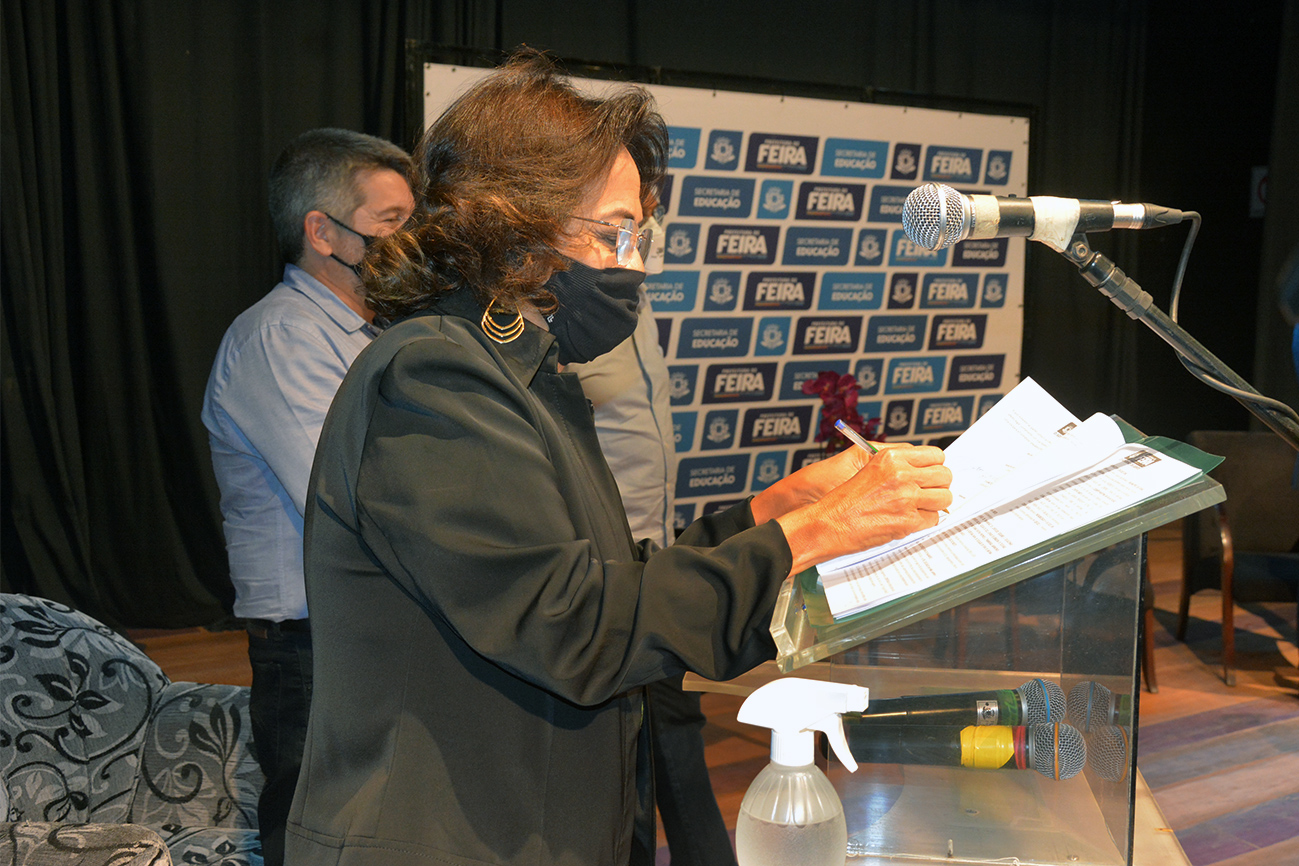 O ato de assinatura ocorreu no Teatro Margarida Ribeiro, com a participação de diversas autoridades municipais, entre as quais, vereadores de vários partidos, secretários municipais e dirigentes, além da representação da equipe pedagógica da Seduc.