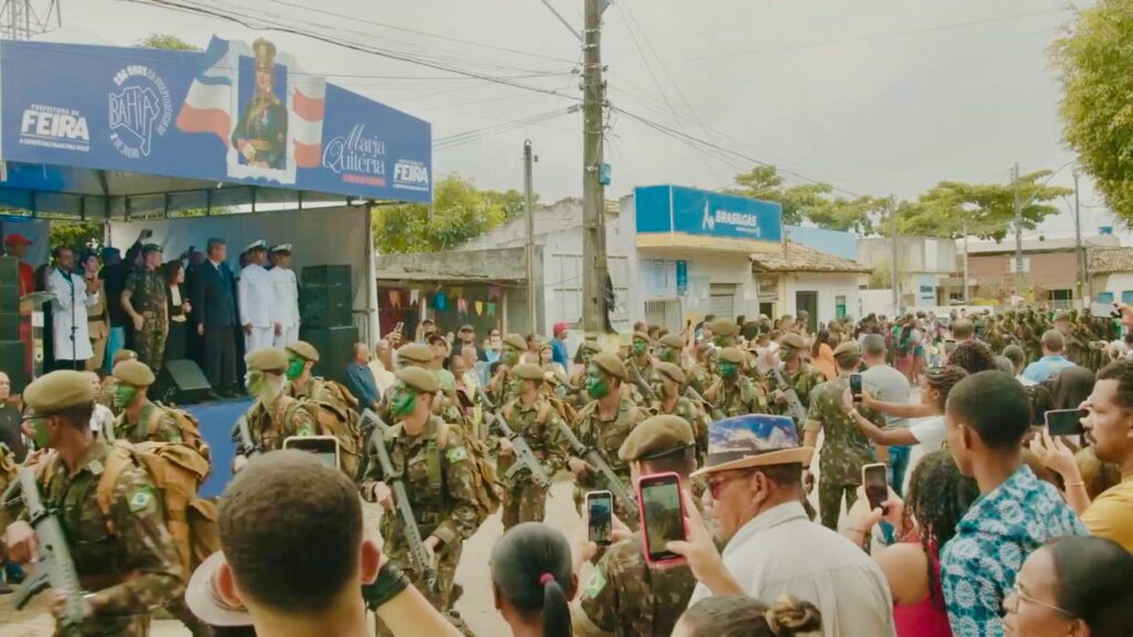 Foi mais de uma hora de transmissão ao vivo do ato que rendeu homenagens à primeira mulher a lutar no exército brasileiro, Maria Quitéria, no distrito onde nasceu a heroína e por isso leva o nome dela. O ato ainda contou com desfile cívico-militar do 35 Batalhão de Infantaria (35 BI) e da Escola Cívico-Militar Municipal Quinze de Novembro, queima de fogos e hasteamento das bandeiras.